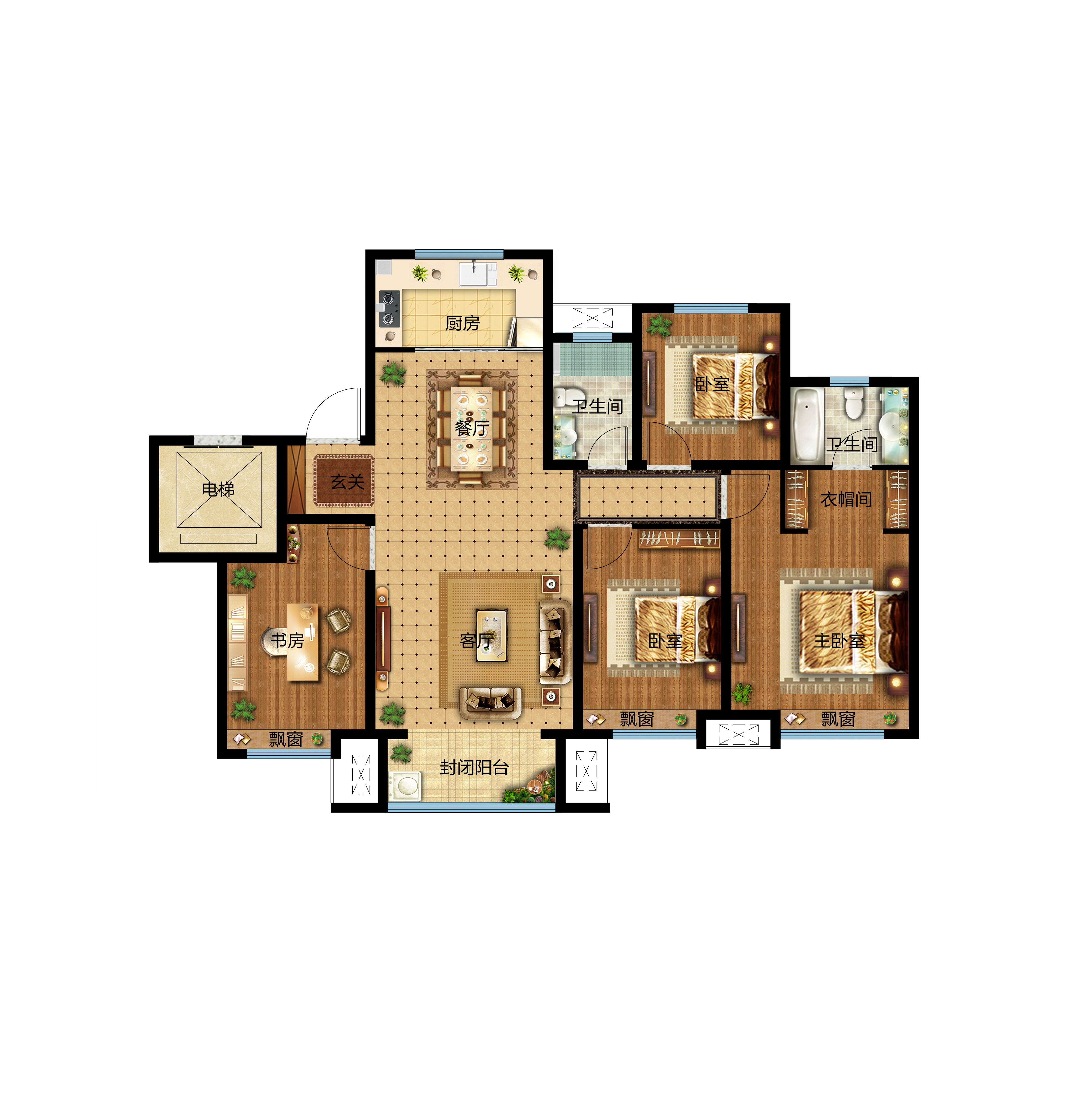 3室2厅2卫-高层E1户型