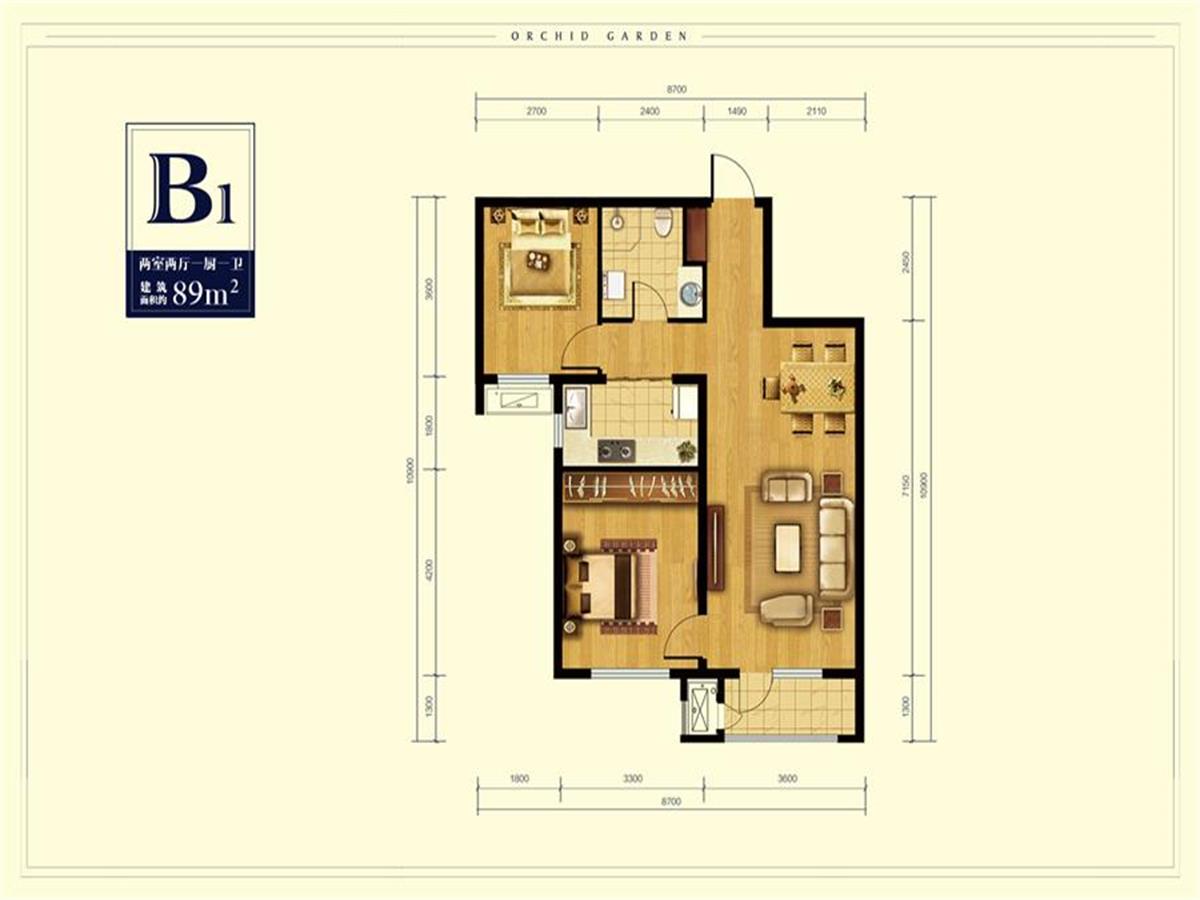 2室1厅1卫-B1 户型图89