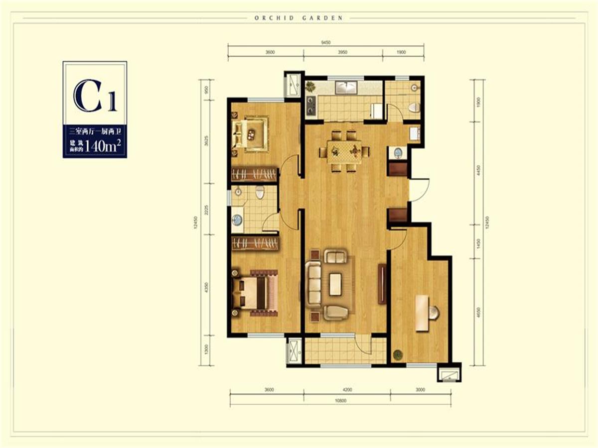 3室2厅2卫-C1 户型图140