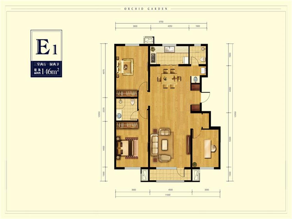 3室2厅2卫-E1 户型图146