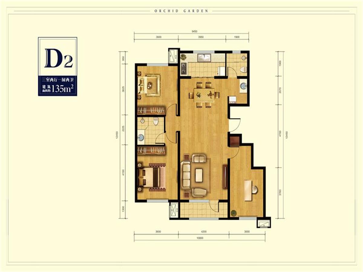 3室2厅2卫-D2 户型图135