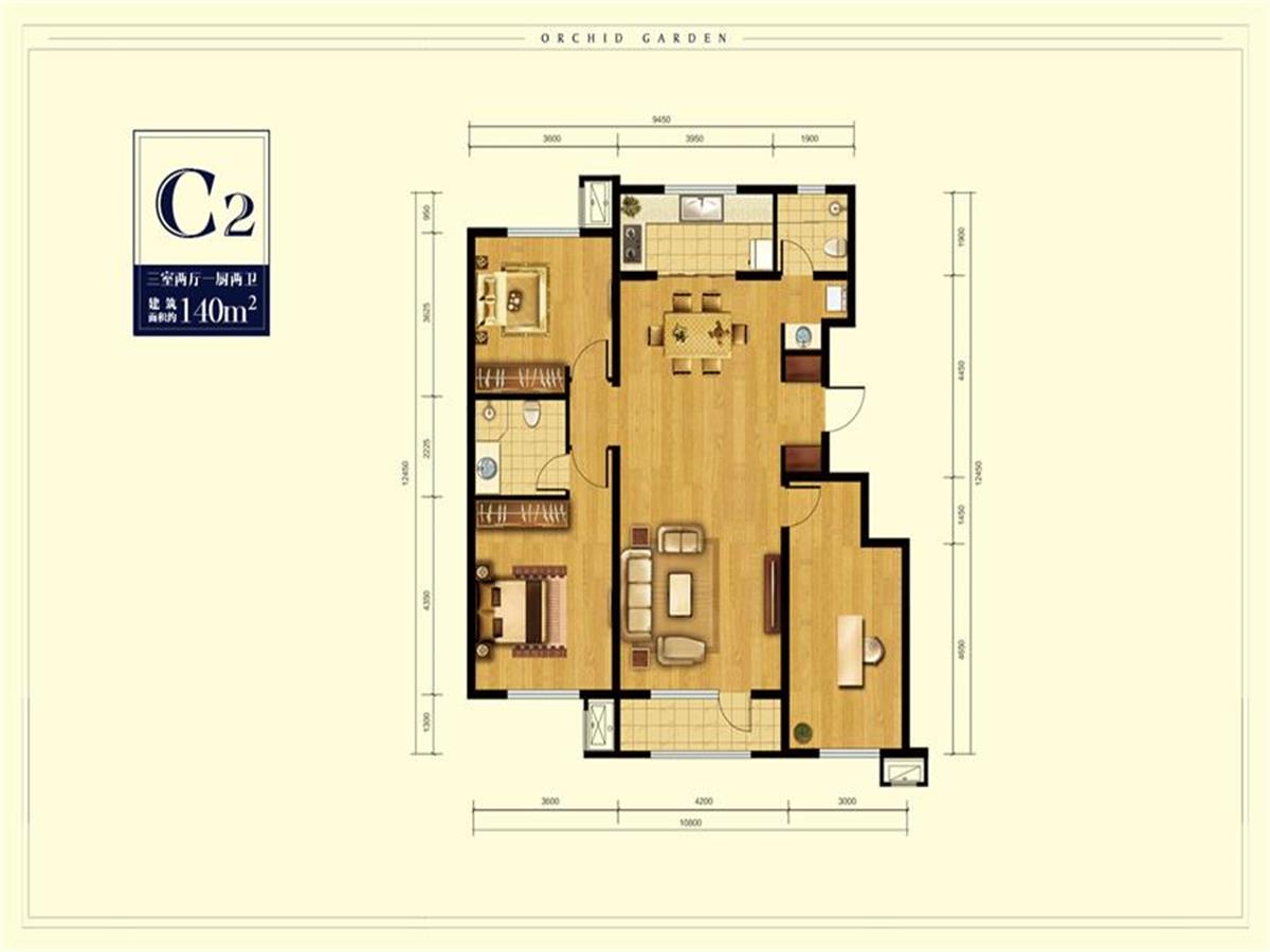 3室2厅2卫-C2 户型图140
