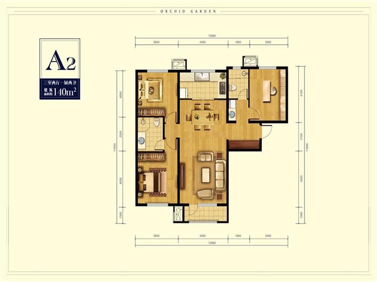 3室2厅2卫-A2户型图140