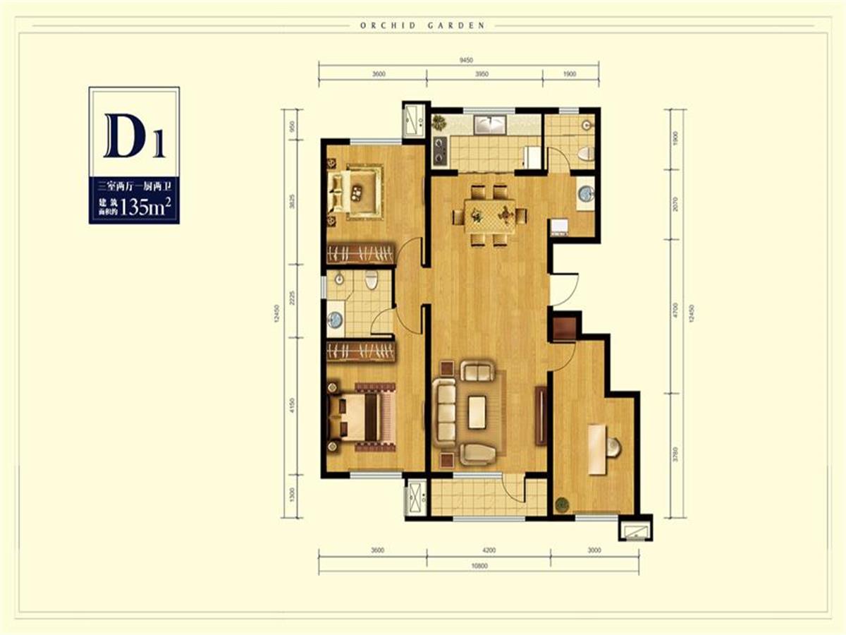 3室2厅2卫-D1 户型图135