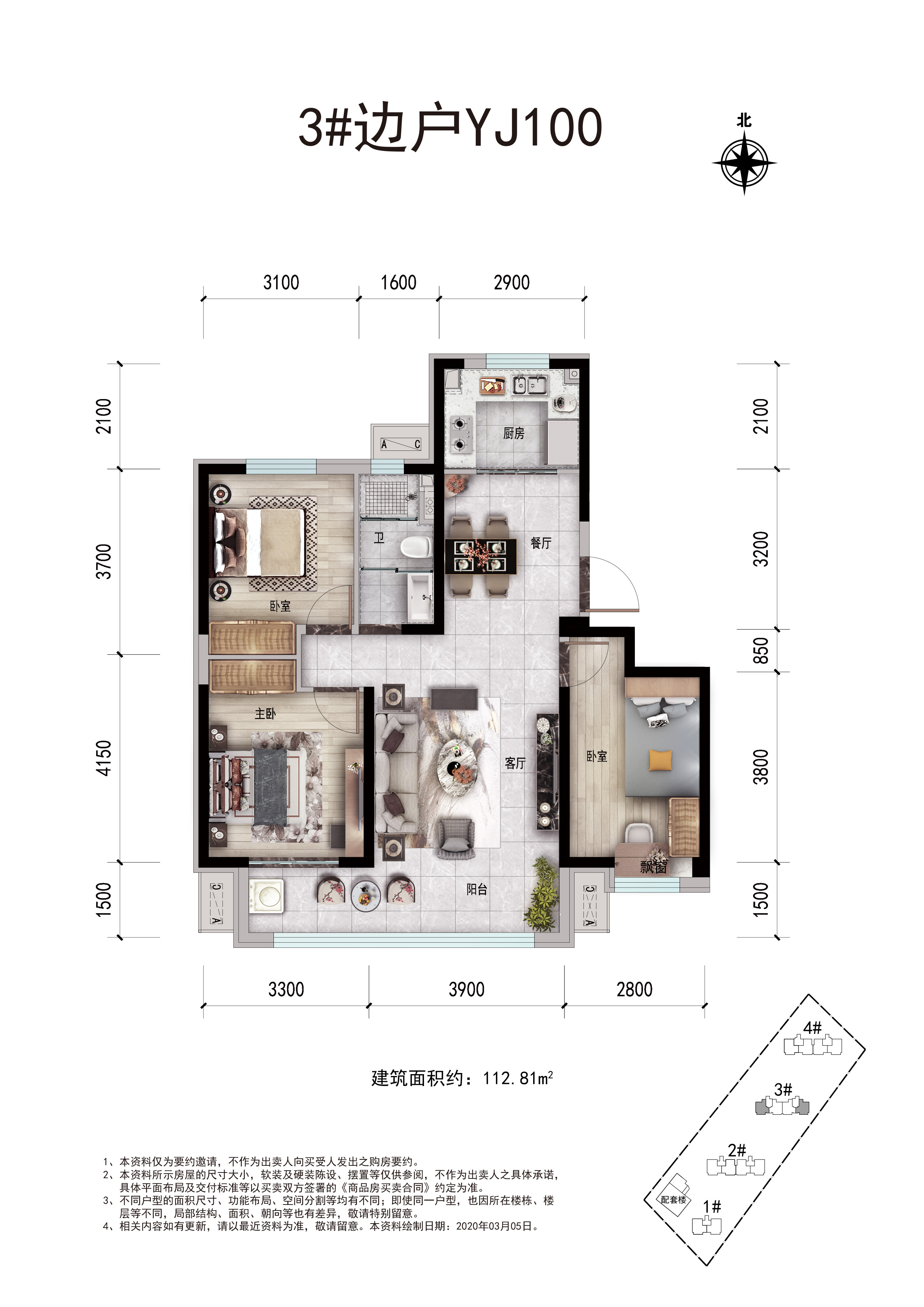 3室2厅1卫-3#中YJ100