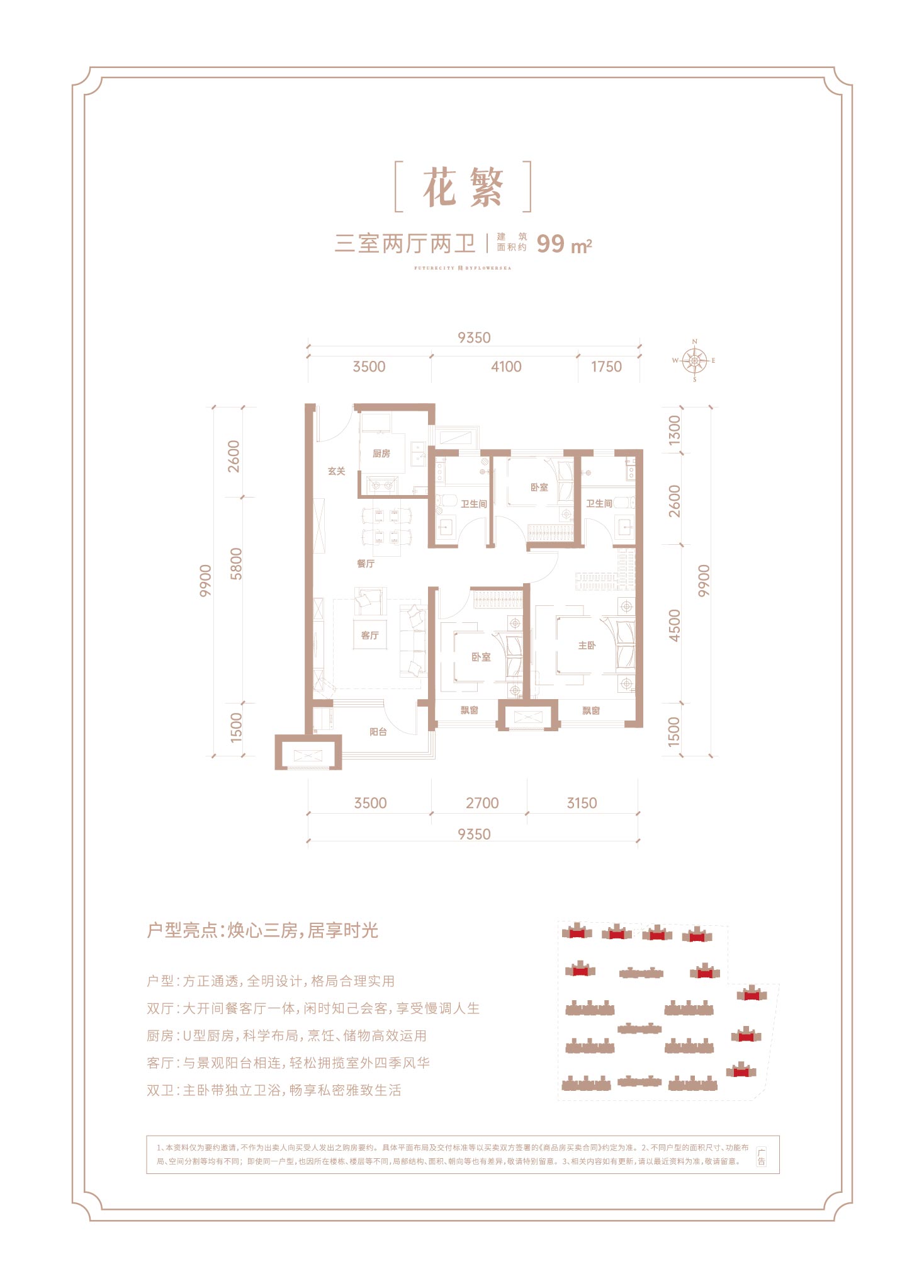 花海未来城,坐落于唐山后花园-花海旁,作为唐山开平排名前列改善项目,花海未来城以2.0容积率的低密格局,和7层、11层洋房为主的建筑业态,为新市区-开平,打造了专属于花海片区的优质低密花园洋房社区。花海未来城占地约6万平米,主要为洋房和小高产品,主力户型为约99㎡双明卫三朝阳南北通透小高层三居室和约135㎡四叶草设计贯通式阳台的七层洋房产品。作为改善社区,建筑施工由央企中冶集团保驾护航,物业由绿城服务提供鼎力支持,确保花海未来城成为区域内优秀的品质改善社区。