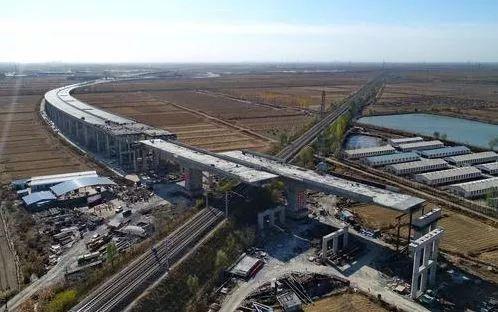 2017年11月10日,河北沿海高速曹妃甸支线跨迁曹铁路大桥成功转体。