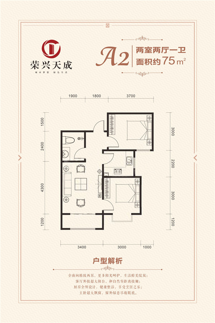 2室2厅1卫-A2两室两厅一卫75㎡户型