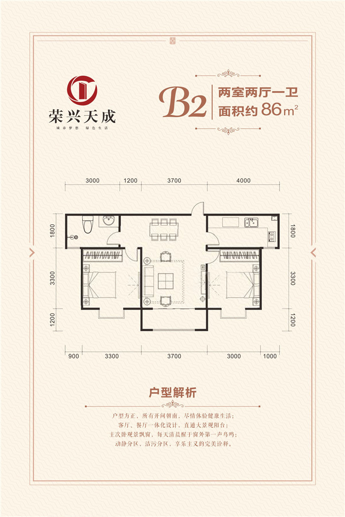 2室2厅1卫-B2两室两厅一卫86㎡户型