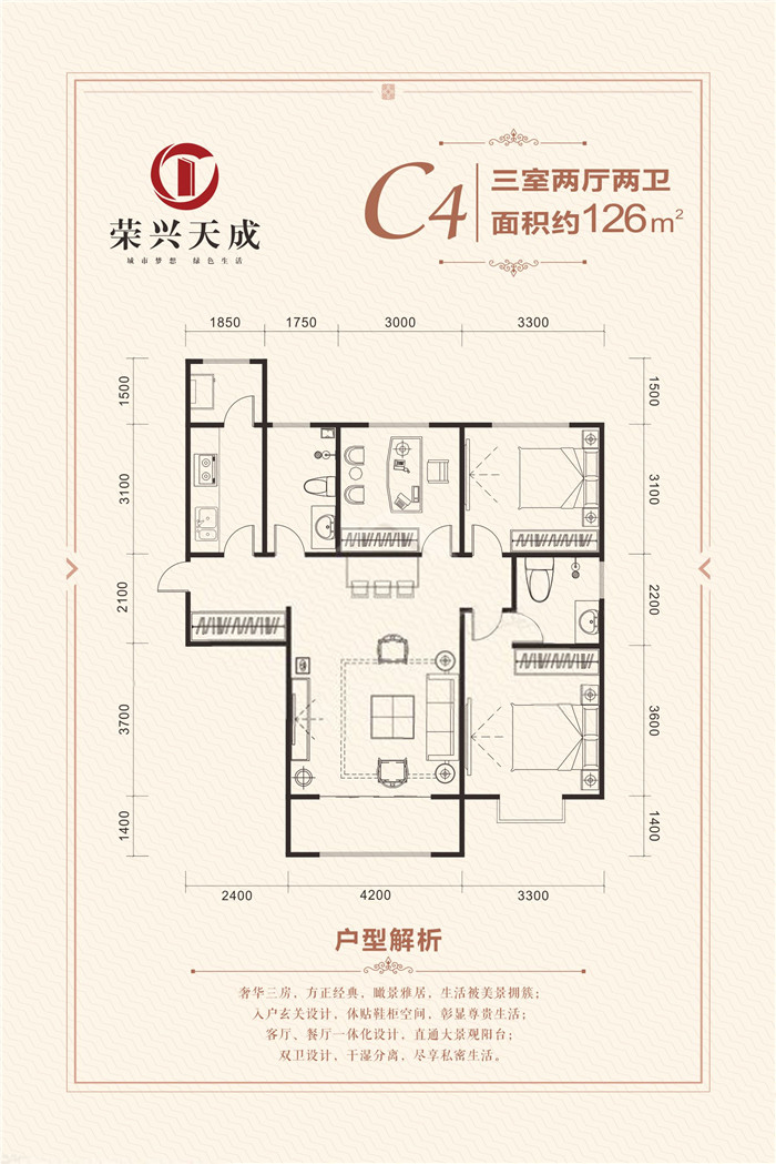 3室2厅2卫-C4三室两厅两卫126㎡户型