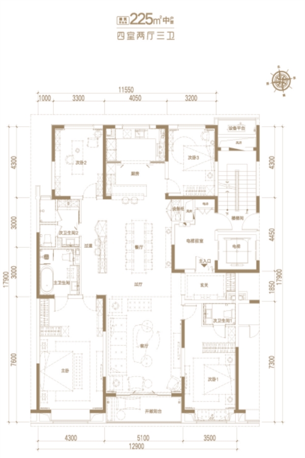 在售 南北通透 户型方正 全明格局 主卧朝南 开放厨房 主卧带卫