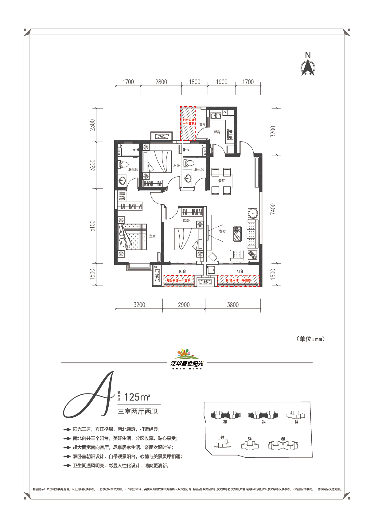 泛华盛世阳光焕新北城,厦门泛华集团投资建设七府坟城中村改造项目,项目东临卧虎山快速路,西至规划路,南临长沟南街,北至市级规划公交枢纽总站。一期总建面约16万平米,其中住宅总建面约13万平米,共规划建设6栋高层阳光美宅,打造新北城亲情人文住区。泛华盛世阳光项目周边生活服务设施齐备,各级政务机构、各大银行、商超等林立,周边有星宇购物等商场,纵享繁华。驾车至太钢总医院(三甲医院)较近,周围各类社区卫生服务机构齐备,悉心呵护家人健康,为幸福保驾护航。 市级公交总站配套,10000㎡现代简约中庭园林,南北通透三阳台设计,6米精装入户大堂,6所小学6所中学。 泛华盛世阳光项目规划两期开发,一期总建筑面积约16万平方米,三栋32层,三栋30层。 注:公共部分精装修