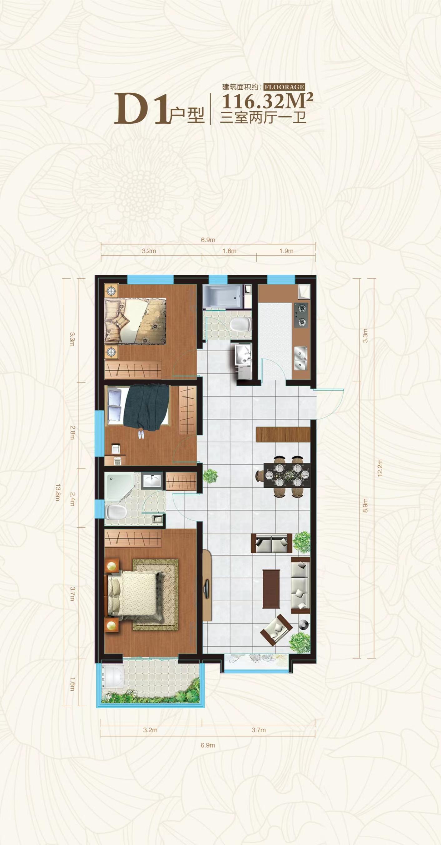 3室2厅2卫-D1户型