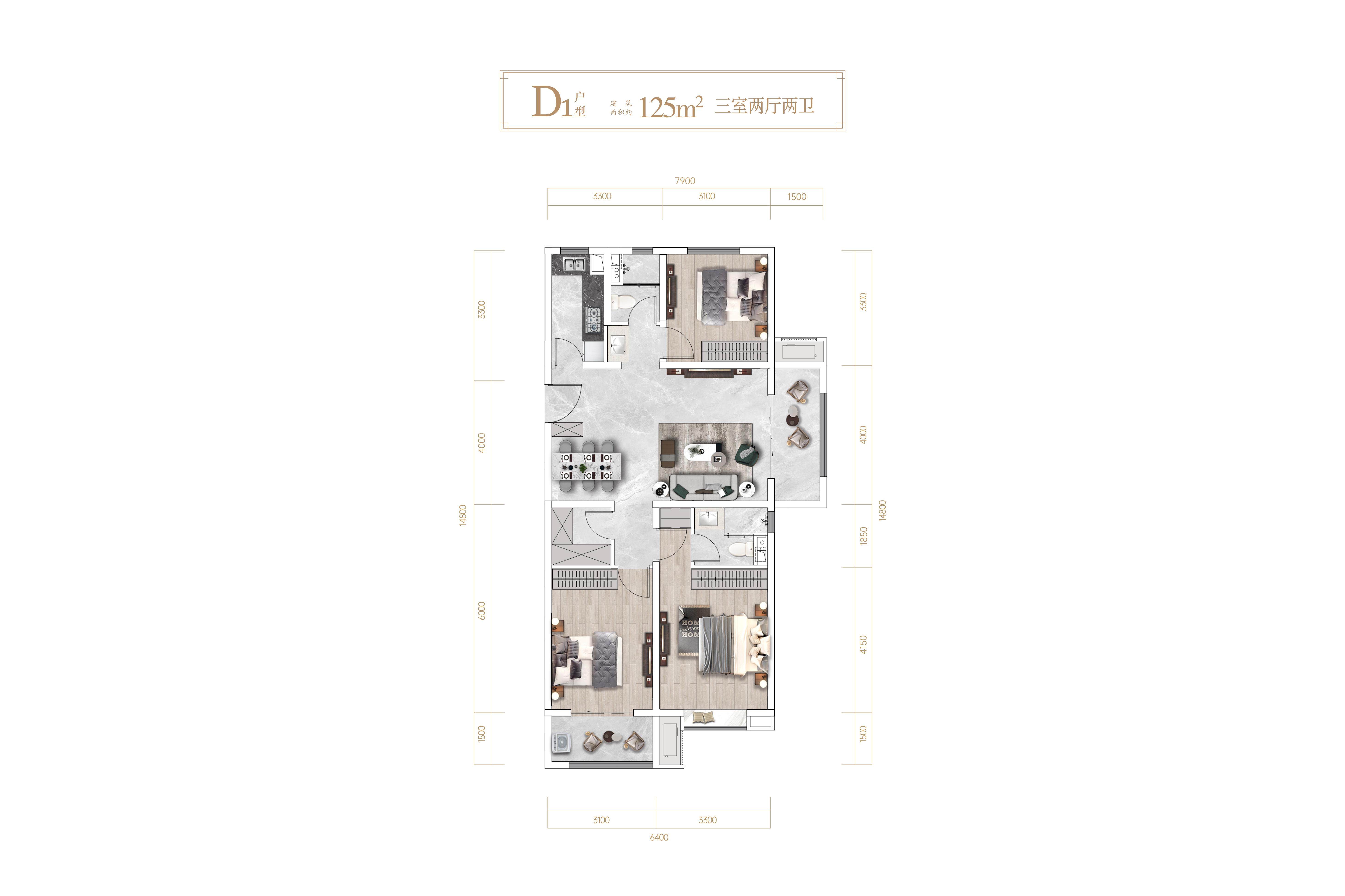 3室2厅2卫-北区D1户型