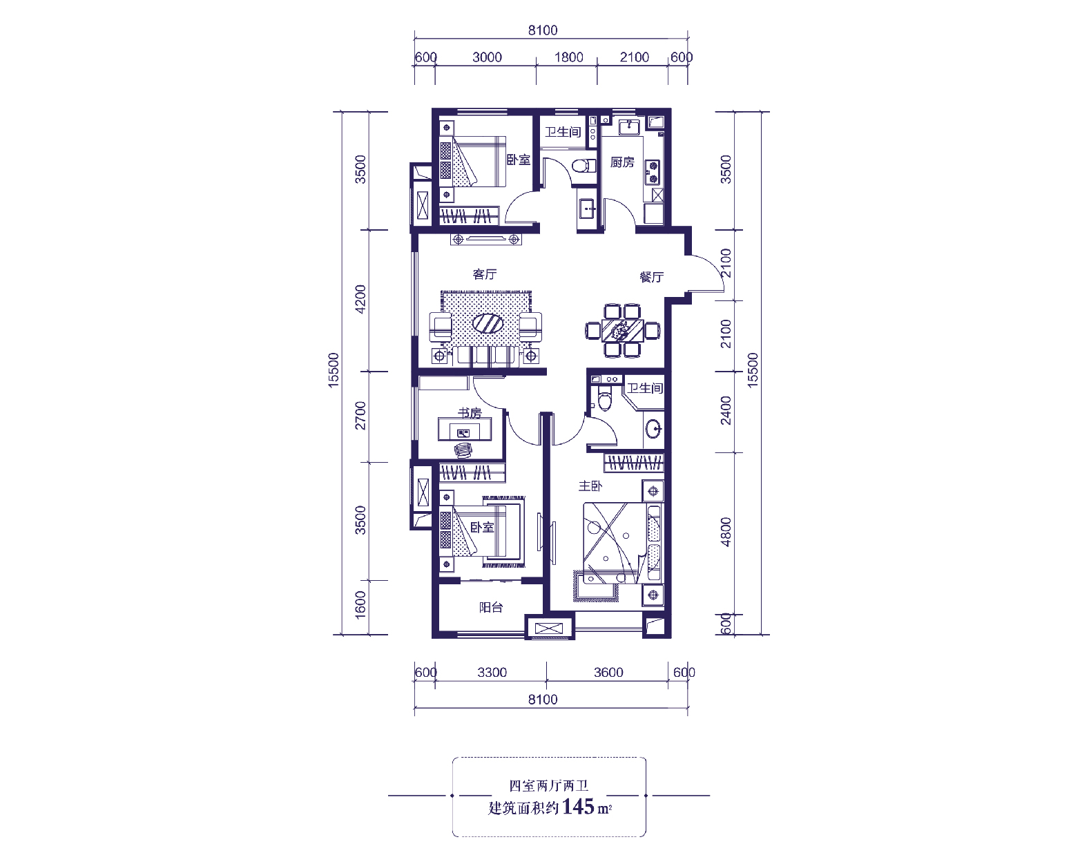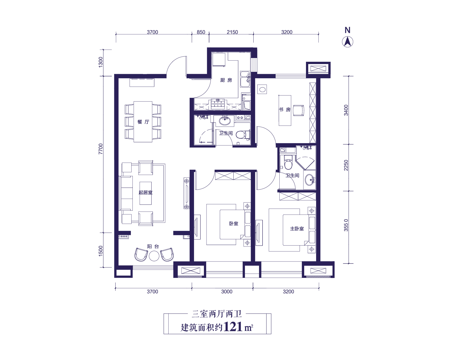 在售 户型方正 全明格局 客厅朝南 主卧朝南 主卧带卫