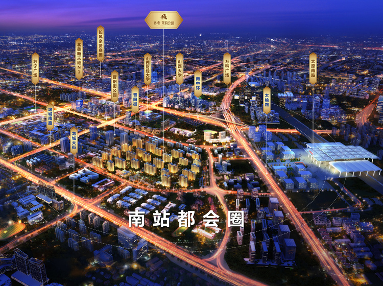 山西大学、财经大学、北美N1、苏宁广场(在建)、万科广场(在建)、晋阳街公园、太原南站、武宿机场等
