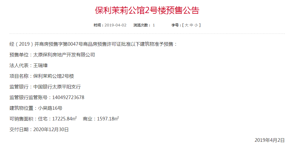 - (2019)并商房预售字第0047号 详情发证时间 2019-04-02绑定楼栋2号楼证件照片