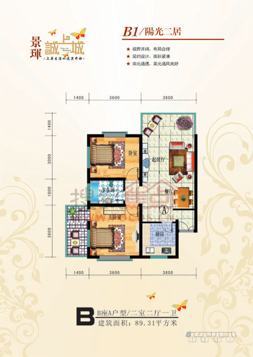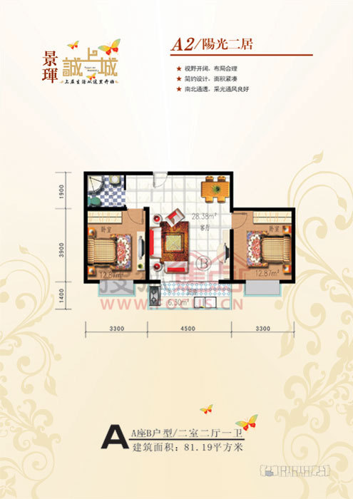 2室2厅1卫-A座B户型