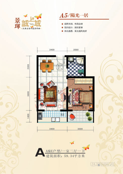1室2厅1卫-A座E户型