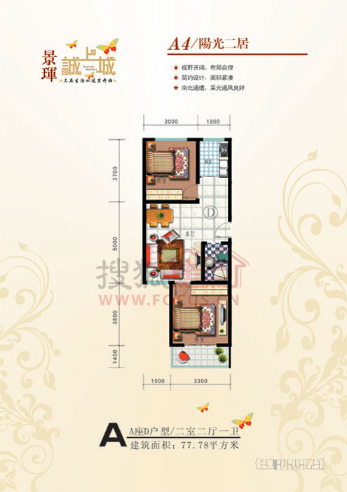 2室2厅1卫-A座D户型