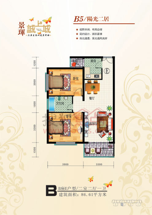 2室2厅1卫-B座E户型