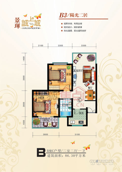 2室2厅1卫-B座C户型