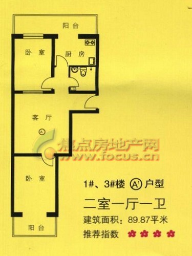 2室1厅1卫-花间小镇 1、3#楼 两室一厅一卫 89.87平米 A