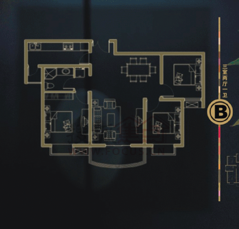 3室2厅1卫-3B