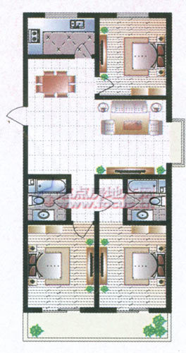 两幢高层,围合式庭院建筑。继承传统四合院围合形式,融入现在住宅建筑元素,注重私有空间与公共空间的合理布局。主要户型57 66 98 107 136 141