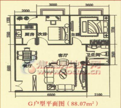 2室2厅1卫-国际大都会 两室两厅一卫 88.07平米 G