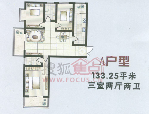 3室2厅2卫-新丰景三室两厅两卫133.25平米 A