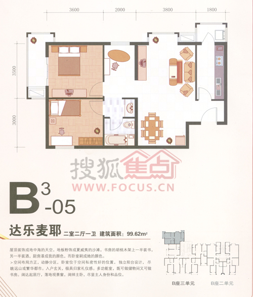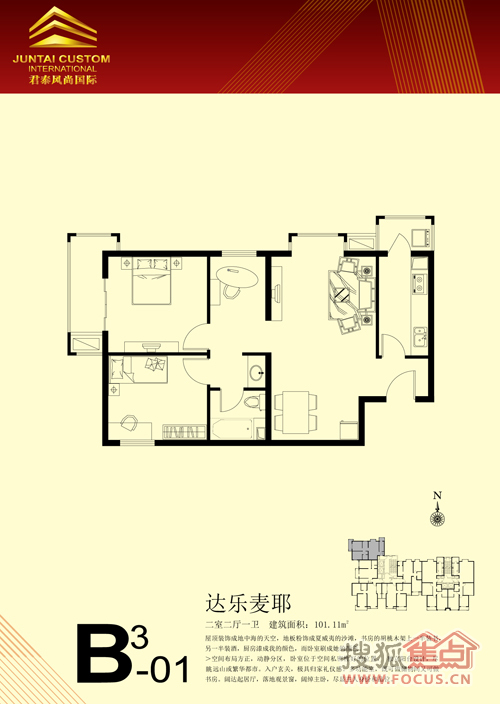 2室2厅1卫-君泰风尚国际B座3单元达乐麦耶户型