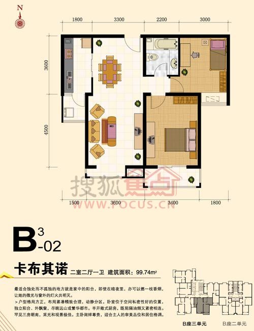 2室2厅1卫-君泰风尚国际B3-02号楼卡布奇诺户型
