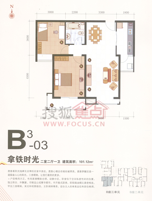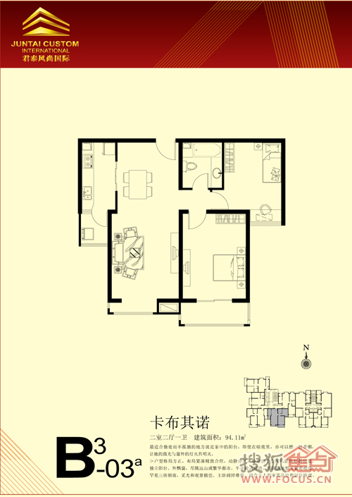 2室2厅1卫-君泰风尚国际B3-03a户型