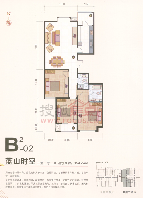 3室2厅2卫-君泰风尚国际B座2单元蓝山时空户型