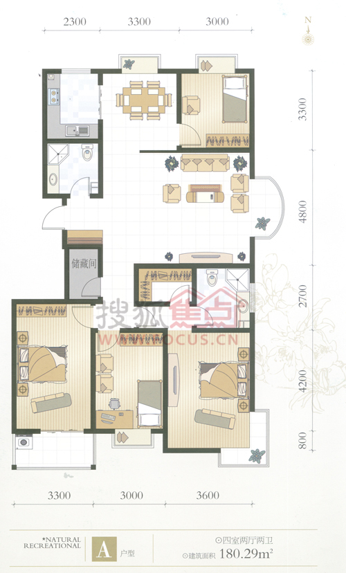 4室2厅2卫-博雅书院 四室两厅两卫 180.29平米 A