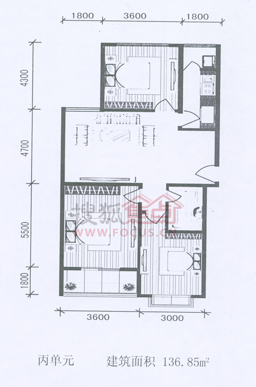 3室2厅2卫-卡尔生活馆 丙单元-三室两厅两卫-136.85