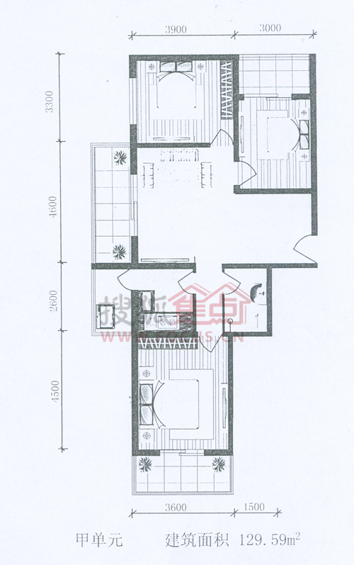 3室2厅1卫-卡尔生活馆 甲单元-129.59-三室两厅一卫