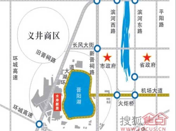 水岸新居项目西接旧晋祠路位于晋阳湖风景度假区,东临新晋祠路奥体中心,北靠太原商务核心地带“长风文化商务区”,南接历史悠久的晋阳古城和驰名中外的晋祠,还有蒙山大佛、龙山、太山、天龙山等旅游胜地,湖岸小径林荫苍翠,芳草掩映湖山,处处怡然景象,让您尽可在闲时亲临湖山,亦能在厅堂之上,从容静赏湖光山色,谈笑天下。
