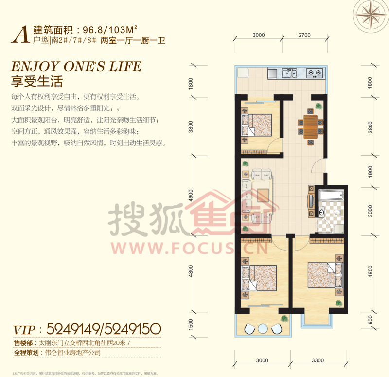 2室1厅1卫-宝嘉龙庭 两室一厅一卫-96-103-A