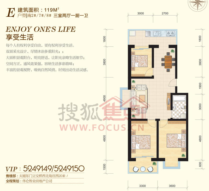 3室2厅1卫-宝嘉龙庭 三室两厅一卫-119-E