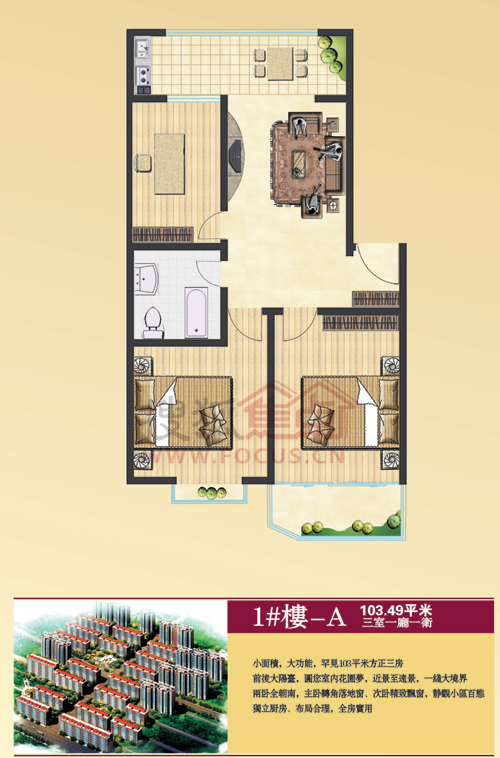 3室1厅1卫-世锦家园1号楼A三室一厅一卫103.49