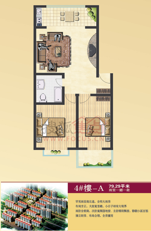 2室1厅1卫-世锦家园4号楼A两室一厅一卫79.29