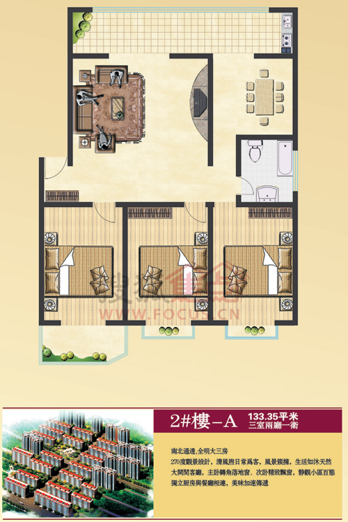 3室2厅1卫-世锦家园-2号楼A-三室两厅一卫133.35