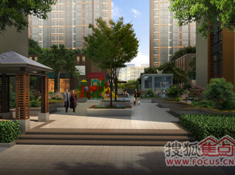 小区内以中轴景观带为中心,四大主题广场环楼而建;廊架、花钵、稀缺高大树种、坡地、步道、树阵、灯光大道、叠瀑等错落有致、点缀小区各个角落,与建筑浑然一体。
