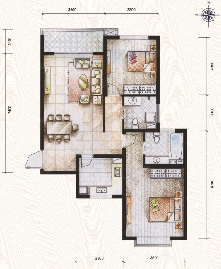 2室2厅2卫-C