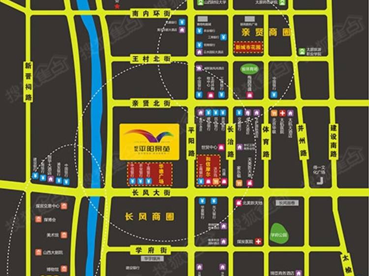 恒实·平阳景苑,北跨亲贤北街、南邻长风大街,西接滨河东西路、东至平阳路。扼守南太原咽喉要塞—长风桥;占据龙城具价值的商圈—亲贤商圈。毗邻长风文化商务区,拥揽汾河湿地景观;南接高新科技区,北望南内环电子商圈。长风文化商务区规划有文化博览区,国际会展区,商务办公区,市政办公区。文化博览区有五大场馆包括山西大剧院,太原博物馆、太原美术馆、山西图书馆、山西省科技馆。国际会展区有煤炭交易中心。
