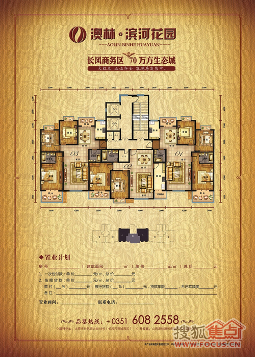 *太原澳林滨河花园-总用地56011.5平方米,总建筑面积19.51万平方米,绿化率30.%。7#、8#、9#为28层板式高层,现有全部封顶。澳林•滨河花园户型舒适大气,两居户型110平米,三居130-160平米,均为两梯两户或两梯三户。