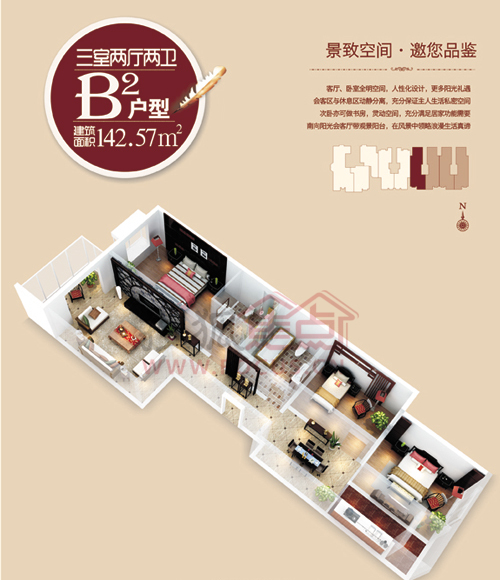 3室2厅2卫-东达迎泽苑三室两厅两卫142平B2