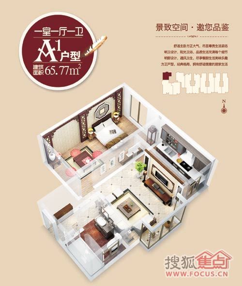1室1厅1卫-东达迎泽苑一室一厅一卫65平A1
